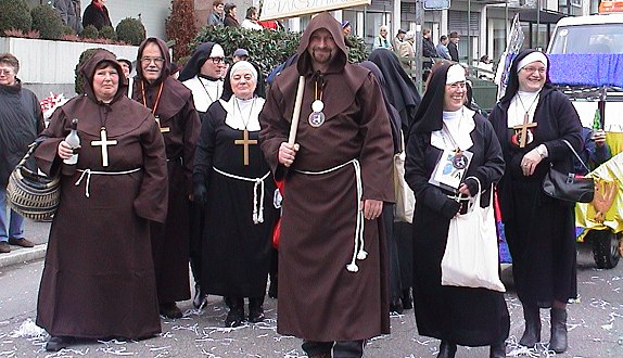 Bunte und lautstarke Narrenschar zog durch Eberbach "Nonnen" und "Äbte" aus Sensbachtal. (Foto: Claudia Richter)Mehr Bilder (Klicken zum Vergrößern):