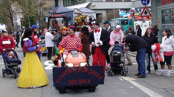 Bunte und lautstarke Narrenschar zog durch Eberbach Die "Elwetrittsche-Jäger" aus Dielbach. (Foto: Hubert Richter)Mehr Bilder (Klicken zum Vergrößern):