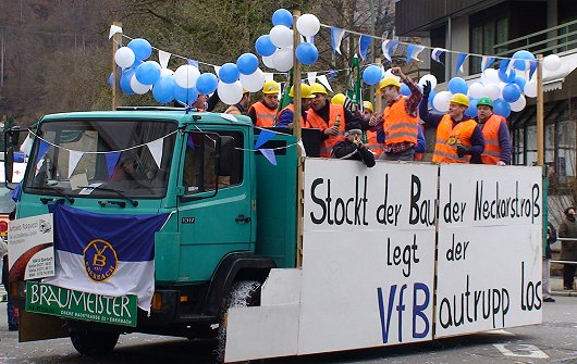 Bunte und lautstarke Narrenschar zog durch Eberbach Ein "Bautrupp" vom VfB Eberbach. (Foto: Hubert Richter)Mehr Bilder (Klicken zum Vergrößern):