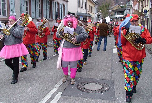 Bunte und lautstarke Narrenschar zog durch Eberbach Die Feuerwehrkapelle Waldkatzenbach. (Foto: Hubert Richter)Mehr Bilder (Klicken zum Vergrößern):