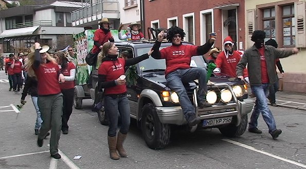 Bunte und lautstarke Narrenschar zog durch Eberbach "Ich bin ein Abi, holt mich hier raus" - eine Gruppe des Abschlussjahrgangs 2009 am Hohenstaufen-Gymnasium. (Foto: Hubert Richter)Mehr Bilder (Klicken zum Vergrößern):