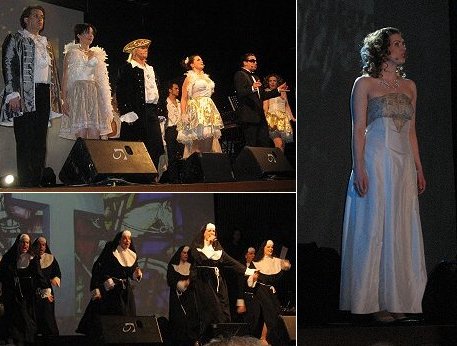Bekannte Songs brachten Stimmung in die Stadthalle Szenen aus "Rock me Amadeus", "Sister Soul" und "Evita" (Fotos: Nicole Kolbe)(ko) Für schwungvolle Stimmung sorgte am Freitagabend in der Stadthalle das Musical-Fieber von "Aktiv Event". Der Abend hielt, was Moderator Alexander Kerbst zu Anfang versprach, nämlich ein musikalisches 12-Gänge-Menü. Der Bogen der Musical-Songs spannte sich dabei über die gesamte Bandbreite des Genres. Über zwei Stunden erlebten die etwa 450 Zuschauer ein stimmgewaltiges und spritziges Programm von Musical-Fieber, das von einer echten Band begleitet wurde – live also – und Licht- und Projektionstechnik zauberten stimmungsvolle Bühnenbilder.
