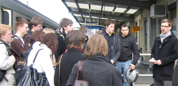 Neigungskurs Geschichte des HSG besuchte den „Zug der Einnerung“ (Foto: privat)(mts) (cj) Durch Deutschland fährt zurzeit ein Zug und sucht nach den Spuren vieler zehntausend jüdischer Kinder, Kinder von Sinti und Roma und von Eltern, die von den Nationalsozialisten bekämpft wurden. Sie wurden aus ihren Wohnungen und Schulen gerissen und von der „Deutschen Reichsbahn“ besonders ab 1940 in verschiedene Konzentrationslager zur Vernichtung deportiert. Der gemeinnützige Verein „Zug der Erinnerung“ ist der Träger dieses Zuges, der im Frühjahr 2009 vor allem durch Süddeutschland fährt und an ausgewählten Stationen Halt macht. Unter Leitung von Oberstudienrat Bernhard Schell besuchte der Neigungskurs Geschichte der 12. Klasse des Hohenstaufen-Gymnasiums (HSG) Eberbach Ende März 2009 den Ausstellungszug in Speyer.