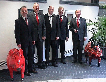 Unser Bild zeigt v.l. Bernhard Martin, Klaus Poser, Gerhard Frankhauser, Regionaldirektor Karlheinz Emig und Gerhard Stock.