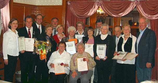 Für passive 25 Jahre Mitgliedschaft wurden gewürdigt: Hubert Domogalla, Alex Köbler, Julius Köbler, Gerda Schild, Waltrud Schmidt, Inge Weinzettl und Erna Mayer.