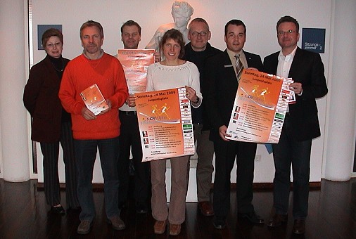 Noch mehr Breitensport - Laufangebote für jeden Fitnessgrad Organisatoren und Sponsoren des Frühlingslaufs mit Bürgermeister Bernhard Martin (r.) und Schirmherrin Angelika Merkel (Mitte). (Foto: Hubert Richter)(hr) Zum fünften Mal findet am Frühlingsfest-Sonntag, 24. Mai, der Eberbacher Frühlingslauf statt. Das inzwischen weithin bekannte Sportevent, das den Hauptsponsor "CH-Alpha" im Namen trägt, bietet mit unterschiedlichen Wettbewerben wieder für nahezu jeden Fitnessgrad die passende Disziplin, ob 21,1 km Halbmarathon, 10-Kilometer-Lauf, Mini-Marathon über 4,2 km, Juniormeile, Schülerstaffel oder Bambini-Wettbewerb.