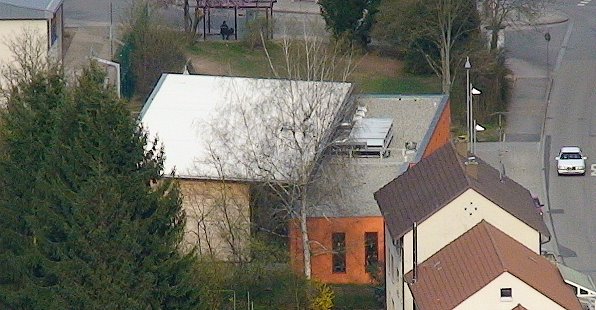 Sonnenkraftwerk über dem Speisesaal (Foto: Hubert Richter)(cr) Noch vor dem Sommer soll auf dem Dach der Steigeschul-Mensa eine Fotovoltaikanlage zur Stromerzeugung gebaut werden. Das beschloss der Werksausschuss des Eberbacher Gemeinderats in seiner Sitzung am vergangenen Montag. Die Stadtwerke sollen die 25 Kilowatt-Anlage mit einem geschätzten Investitionsaufwand von 85.000 Euro bauen und betreiben. Sie soll jährlich im Durchschnitt 21.500 Kilowattstunden Strom liefern.
