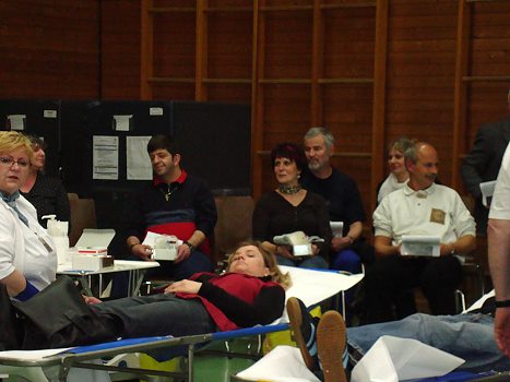 21 Erstspender folgten dem Blutspendeaufruf (Foto: privat)(bro) (mv) Die Blutspendeaktion des DRK Eberbach am 26. März in der Mehrzweckhalle der Dr. Weiß-Schule war ein Erfolg. Insgesamt konnte das Blutspendeteam 172 Blutkonserven mit nach Mannheim nehmen. Erfreulich war die Zahl von 21 Erstspendern.