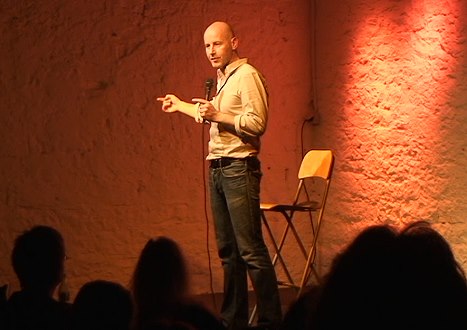 TV-bekannter Comedian gastierte (Foto: Hubert Richter)(hr) Eine One-Man-Show im besten Sinn erlebten die Gäste des Kulturlabors am 3. April in der ausverkauften Galerie Artgerecht. Mit Heino Trusheim gastierte ein fernsehbekannter Comedian auf der Eberbacher Kleinkunstbühne, der stehend und völlig ohne Requisiten sein Programm "Früher war alles besser" präsentierte.