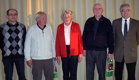 Barth dankte im Namen aller Mitglieder für das vorbildliche jahrzehntelange Engagement der Jubilare und überreichte ihnen eine Urkunde sowie ein Präsent.