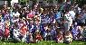 Um 14 Uhr setzte sich der bunte Zug, angeführt vom Eberbacher Fanfarenzug, am Turnplatz in Bewegung. Mit dabei waren zahlreiche Kinder der drei katholischen Kindergärten mit prächtigen Sommertagsstecken sowie geschmückten Fahrrädern und Rollern. Begleitet wurden sie von ihren Eltern, Verwandten und Freunden. Die Jugendfeuerwehr zog den im städtischen Bauhof gebauten großen Schneemann aus Holz und Papier durch die Straßen, und die Pfadfinder Silberreiher, die zum 50. Mal beim Sommmertagszug mitmachten, trugen wieder die Sommer- und Winterfiguren. Unter sicherem Geleitschutz der Eberbacher Polizei zog die bunte Schar durch die Altstadt und die Friedrich-Ebert-Straße zur Theodor-Frey-Schule. Dort begrüßte Günter Lipski vom Bürger- und Heimatverein alle Teilnehmer. Zu musikalischer Begleitung durch die Katholische Pfarrkapelle wurden Frühlingslieder gesungen, und drei mutige Kinder trugen Frühlingsgedichte vor.