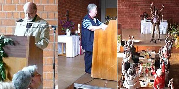 Nach der Begrüßung und einem Liedvortrag der Kinder des Kindergartens Regenbogenreferierte Pf. i. R. Rudolf Atsma aus Neckargemünd, langjähriger Pfarrer unter anderem im ökumenischen Zentrum Arche, über das Thema "Gelebte Ökumene in der Gemeinde". Dass es immer noch nicht möglich sein soll, gemeinsam Eucharistie/Abendmahl zu feiern, kann der Verfechter der Ökumene nicht akzeptieren. Immerhin hat das Gutachten der konfessionskundlichen Institute in Bensheim, Straßburg und Tübingen ganz eindeutig klargestellt, dass dies aus theologischer Sicht möglich sei. Er fragte, wie lange kann sich das Christentum wohl noch den Luxus leisten, sich gegenseitig zu ignorieren und gar zu diffamieren. "Jesus Christus selbst ist es doch, der uns alle zum Abendmahl einlädt". Ausführlich berichtete er von seinen persönlichen Erfahrungen der ökumenischen Arbeit in seinen Pfarrstellen, die er in seiner Dienstzeit innehatte. Er musste oftmals viele Widerstände überwinden, um sein Gedankengut umsetzen zu können. Dabei wäre es so einfach, wenn sich alle christlichen Kirchen an die Vereinbarung der altkatholischen Kirche und der anglikanischen Kirche aus dem Jahre 1931, unterzeichnet in Bonn, anschließen würden. Seit dieser Zeit besteht nämlich zwischen diesen Konfessionen volle Kirchengemeinschaft.