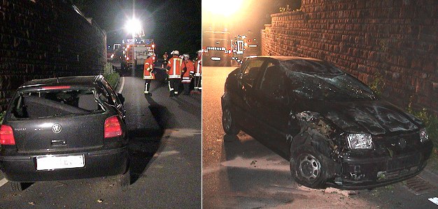 Von der Fahrbahn abgekommen und überschlagen (Fotos: Hubert Richter)(hr) Mit Verletzungen und einem Totalschaden endete heute kurz vor 22 Uhr die Fahrt eines 24-jährigen Waldbrunners auf der Dielbacher Straße (L 524) in Richtung Eberbach.