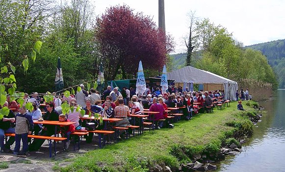 Jubiläums-Fischerfest am 1. Mai (Foto: privat)(bro) (jsch) Auf stolze 25 Jahre Vereinsgeschichte blicken die Zwingenberger Angler in diesem Jahr bereits zurück. Und diese Jubiläumszahl schmückt nun auch das traditionelle Fischerfest am 1. Mai. So wird der Platz an der Neckarfähre mit seinem Blick auf die romantische Kulisse von Schloss Zwingenberg auch im Jubiläumsjahr wieder zum Anziehungspunkt für Wanderer, Radler und S-Bahn-Nutzer aus nah und fern.