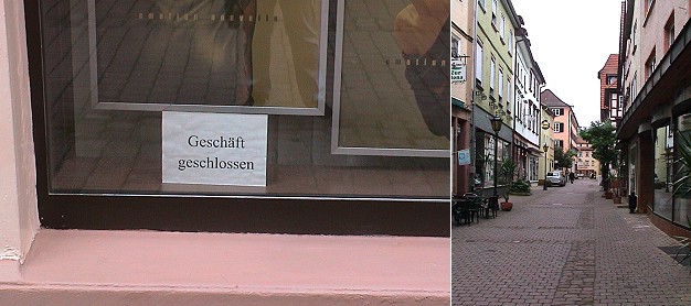 Quo vadis Innenstadt? - Arbeitsgruppe am Start Nicht nur in der Kellereistraße (r.) stehen etliche Geschäfte leer. Ein neues Konzept soll helfen, die Situation zu verbessern. (Fotos: Claudia Richter)(hr) Für den Einzelhandels- und Dienstleistungsstandort Eberbach soll ein Entwicklungskonzept erarbeitet werden. Der Gemeinderat beschloss heute zunächst einstimmig die Einsetzung einer Arbeitsgruppe, die eine Auftragsvergabe für das Konzept vorbereiten soll.