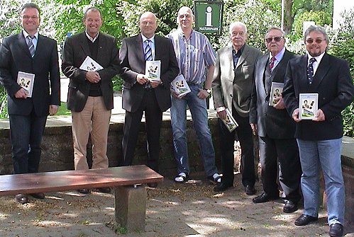 Staat und Wirtschaft auf dem Weg in die Moderne Präsentierten heute das neue Eberbacher Geschichtsblatt: V.l. Bernhard Martin , Bruno Schmitt, Michael Teppner von der Gelita AG, Dr. Ulrich Spiegelberg, Dr. Dieter Röckel, Wilhelm Seußler und Dr. Rüdiger Lenz. (Foto: Claudia Richter)(cr) In einer Auflage von 1.000 Stück ist jetzt das "Eberbacher Geschichtsblatt 2009" erschienen. Bürgermeister Bernhard Martin und Stadtarchivar Dr. Rüdiger Lenz stellten das 200 Seiten starke Buch heute gemeinsam mit beteiligten Autoren vor.