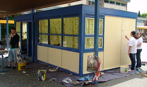 Sozialaktion beendet - Hauptschüler haben ganze Arbeit geleistet Das ehemalige Hausmeisterhäuschen bekam unter anderem einen neuen Anstrich. (Foto: Hubert Richter)Mehr Bilder (Klicken zum Vergrößern):