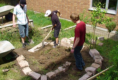 Sozialaktion beendet - Hauptschüler haben ganze Arbeit geleistet Im Schulgarten wurde eine Kräuterspirale aufgebaut. (Foto: Hubert Richter)Mehr Bilder (Klicken zum Vergrößern):