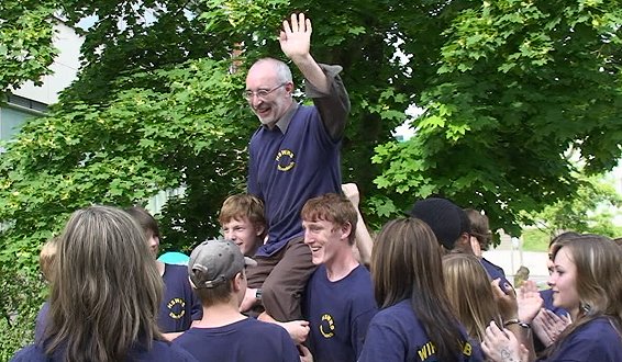 Sozialaktion beendet - Hauptschüler haben ganze Arbeit geleistet Die Schülerinnen und Schüler ließen Projektleiter Franz Josef Weber hochleben. (Foto: Hubert Richter)Mehr Bilder (Klicken zum Vergrößern):