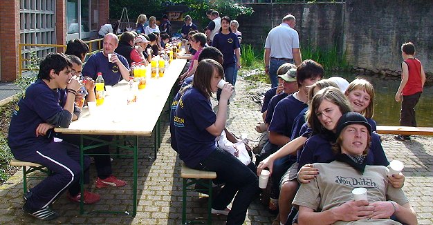 Gefeiert wurde im Schulgarten mit Steaks und Würstchen vom Holzkohlengrill sowie reichlich Getränken, die sich die Jugendlichen und ihre Betreuer mit Projektleiter Franz Josef Weber auch redlich verdient hatten. Zahlreiche Spender und Sponsoren sowie Eltern der beteiligten Schüler hatten das Projekt unterstützt und dessen Verwirklichung erst ermöglicht.
