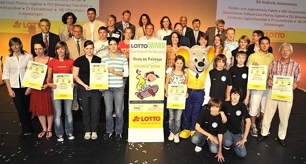 VfB engagiert sich für sozial benachteiligte Jugendliche Die Preisträger LOTTO Sportjugend-Förderpreises 2008 bei der Preisverleihung am 9. Mai 2009 im Europa-Park Dome. In der hinteren Reihe: prominente Gäste aus Sport, Politik und Wirtschaft. (Foto: privat)(bro) (lo) Bereits zum sechsten Mal wurde der LOTTO Sportjugend-Förderpreis vergeben. Im Rahmen einer festlichen Preisverleihung am 9. Mai wurden 124 Sportvereine und Sportorganisationen für vorbildliche Jugendarbeit im Europa-Park Rust gewürdigt. Rund 400 Vereine aus Baden-Württemberg hatten sich um die mit 95.000 Euro dotierte Auszeichnung beworben. Den Landessieg sicherte sich der VfL Nagold für sein Engagement gegen Gewalt und Rassismus.