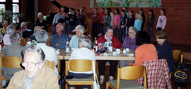 Heimat ist, wo ich mich wohl fühle (Foto: privat)(bro) (ab) Wohlfühlen sollten sich die zahlreichen Besucher auch beim diesjährigen ökumenischen Seniorennachmittag in Eberbach. Bilder aus der Heimat begrüßten die Ankommenden, Lieder von Aufbruch, Heimat und Heimkommen umrandeten den Nachmittag, der Kinderchor "Die Nachtigallen" unter Leitung von Bezirkskantor Achim Plagge unterstrich dieses Gefühl mit seinen neuen und alten Kinderliedern, und auch die Verpflegung trug dazu bei.