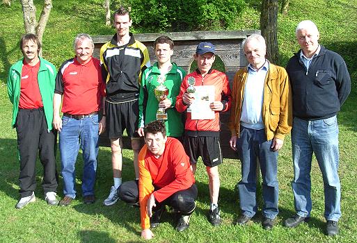 Es folgte eine stimmungsvolle Siegerehrung, welche der ehemalige Leiter des Geschäftsbereichs Wohnen der Johannes-Anstalten Mosbach, Dr. Peter Rösinger, gemeinsam mit dem jetzigen Geschäftsbereichsleiter Jörg Huber durchführte. Bei strahlendem Sonnenschein wurden die Urkunden bzw. Pokale freudig in Empfang genommen. Der von der Volksbank gestiftete Wanderpokal durfte in den Johannes-Anstalten verbleiben. Schon jetzt kommt Vorfreude auf die Baden-Württembergischen Meisterschaften im Juli auf.
