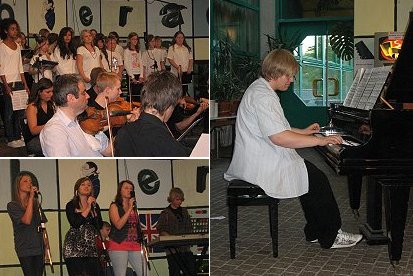Unter der Leitung von Lorenz Miehlich, Lehrer an der Musikschule, trat als letzter Programmpunkt der Oberstufenchor auf, der das Resultat eines Modellversuchs von Neunt- und Zehntklässlern ist, die sich für das Fach Musik entschieden hatten. Begleitet vom Streichensemble der Musikschule sangen sie „Music is the Key“ von Sarah Connor. Mit dem schwungvollen Klassiker „Oh happy day“ brachten die Jugendlichen, am Klavier begleitet von Musiklehrer Robert Bittner, ihre Freude über den gelungenen Abend zum Ausdruck.
