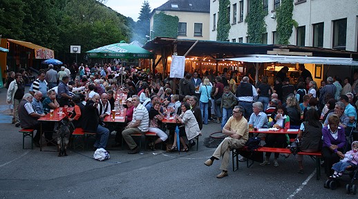 Drei Tage voller Programm - Ende des 30. Eberbacher Frühlings Je später der Abend wurde, desto mehr füllte sich (wie hier im Bild) der Schulhof der Dr.-Weiß-Schule. (Foto: Mauritius Schell)Mehr Bilder (Klicken zum Vergrößern):