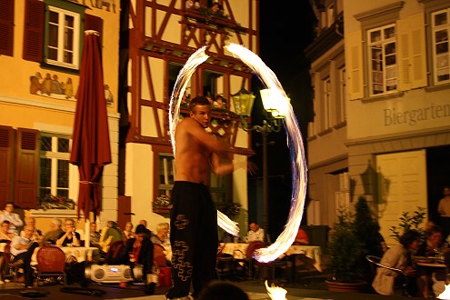 Drei Tage voller Programm - Ende des 30. Eberbacher Frühlings Feuerjongleuer Jeremy sorgte für "Ahs" und "Ohs" im Publikum. (Foto: Mauritius Schell)Mehr Bilder (Klicken zum Vergrößern):