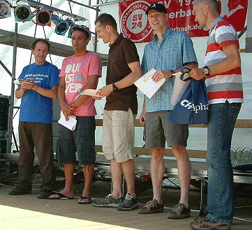 Hohe Temperaturen machten den Athleten zu schaffen Die Top Fünf im Halbmarathon der Männer, Jörg Richter ganz rechts. (Foto: Wörner)Mehr Bilder (Klicken zum Vergrößern):