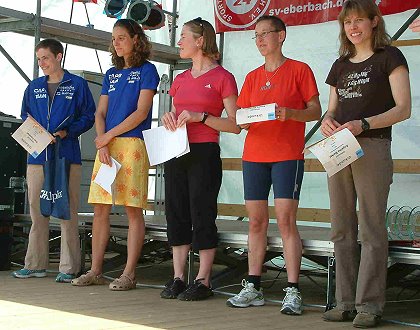 Hohe Temperaturen machten den Athleten zu schaffen Top Fünf der Damen im 10-km-Lauf. (Foto: Wörner)Mehr Bilder (Klicken zum Vergrößern):
