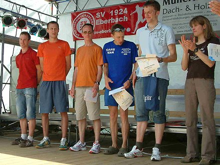 Am Ende bedankte sich Moderator Armin Kapell bei allen Teilnehmern, den unzähligen Helfern, hier besonders bei den Schülern der Haupt- und Werkrealschule Eberbach, die nicht nur die stärkste Teilnehmergruppe stellten, sondern auch schon am frühen Morgen beim Aufbau geholfen hatten. Weiterhin dankte Kapell den zahlreichen Sponsoren, ohne die so eine kostspielige Veranstaltung wie der CH-Alpha-Frühlingslauf nicht denkbar wäre.
