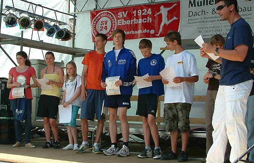 Am Ende bedankte sich Moderator Armin Kapell bei allen Teilnehmern, den unzähligen Helfern, hier besonders bei den Schülern der Haupt- und Werkrealschule Eberbach, die nicht nur die stärkste Teilnehmergruppe stellten, sondern auch schon am frühen Morgen beim Aufbau geholfen hatten. Weiterhin dankte Kapell den zahlreichen Sponsoren, ohne die so eine kostspielige Veranstaltung wie der CH-Alpha-Frühlingslauf nicht denkbar wäre.