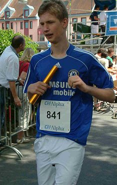 Hohe Temperaturen machten den Athleten zu schaffen Staffelläufer Christian Görich vom TVE. (Foto: Wörner)Mehr Bilder (Klicken zum Vergrößern):