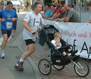 Hohe Temperaturen machten den Athleten zu schaffen Jüngster Teilnehmer beim Halbmarathon. (Foto: Wörner)Mehr Bilder (Klicken zum Vergrößern):