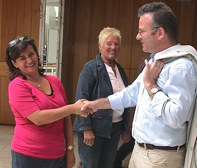 Freie Wähler und AGL gestärkt - CDU und SPD verlieren Bürgermeister Bernhard Martin gratuliert der neuen Frau bei den Freien Wählern, Susanne Lehn, zum Wahlerfolg. (Foto: Claudia Richter)Mehr Bilder (Klicken zum Vergrößern):
