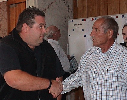 Freie Wähler und AGL gestärkt - CDU und SPD verlieren Glückwunsch von SPD-Chef Manfred Wernz (r.) für den neu gewählten CDU-Mann Udo Geilsdörfer. (Foto: Claudia Richter)Mehr Bilder (Klicken zum Vergrößern):