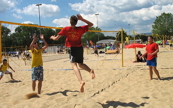 Volleyballer hatten nicht nur Spaß, sondern auch Erfolge (Foto: privat)(bro) (tg) Seit langem haben sich die Volleyball-Wettbewerbe bei deutschen und Landesturnfesten etabliert, spätestens mit dem Boom im Beachvolleyball bilden sie einen der Teilnehmermagnete für die größte Breitensportveranstaltung der Welt. So auch in der Woche vom 31. Mai bis 6. Juni, als das "Internationale Deutsche Turnfest" 75000 aktive Sportler, darunter mehrere tausend Volleyballer, nach Frankfurt zog und eines der größten Volleyballturniere weltweit veranstaltete.