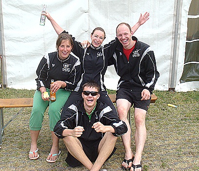 Indiaca vom Feinsten (Foto: privat)(bro) (msch/dsch) Zum ersten Mal nahm das Indiaca Team des TVE an einem Internationalen Deutsch Turnfest teil. Zuerst standen die Pokalturniere in der Halle auf dem Programm. Hierbei erkämpfte sich der TVE in spannenden Spielen gegen eine Vielzahl etablierter Mannschaften, wie die aktuellen Weltmeister aus Luxemburg und den deutschen Meister und World-Cup Gewinner Grünwinkel, einen siebten Platz im Mixed und den achten Platz bei den Männern.