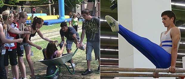 Turnen, Partys und jede Menge Spaß Links: Bembelwettrennen der Turnmannschaft, rechts: Tino Broghammer am Barren. (Fotos: privat)(bro) (jl) Ein Deutsches Turnfest ohne Eberbacher Turner ist nicht vorstellbar und schon gar nicht, wenn es gleich um die Ecke stattfindet. Und so machten sich 20 Turnerinnen und Turner mit ihren Betreuern sowie den aktiven Schwimmern, Indiaca- und Volleyballspielern auf den Weg, um eine Woche mit Turnen und Feiern in Frankfurt, der großen Stadt am Main, zu verbringen.