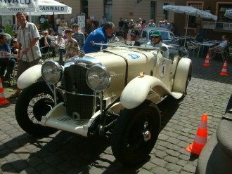 Stelldichein von 6000 PS am Alten Markt Rover Meteor Speed 20 von 1933 mit Kuno und Kerstin Hug. (Foto: Wörner)Mehr Bilder (Klicken zum Vergrößern):