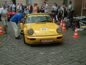 Nach dem Stelldichein am Alten Markt, wo sich die Teams einen Durchfahrtstempel abholen mussten, ging es über die Neckarbrücke zur ehemaligen Bergrennstrecke zu einer Wertungsprüfung. Da es bei dieser Art Rallye nicht auf Geschwindigkeit ankommt, waren alle Wertungsprüfungen so genannte Sollzeitprüfungen. Die gestellten Aufgaben mussten in einer vorgegebenen Zeit möglichst sekundengenau erfüllt werden.