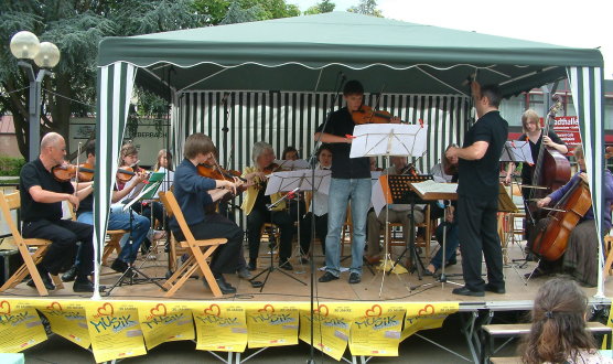 Musikschule und Sozialstation feierten gemeinsam 30-jähriges Bestehen Kammerorchester der Musikschule mit Dirigent Vladimir Rivkin und Violinsolist Fabian Weithoff. (Foto: Wörner)Mehr Bilder (Klicken zum Vergrößern):