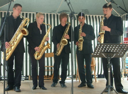 Musikschule und Sozialstation feierten gemeinsam 30-jähriges Bestehen Die Anonymen Saxophoniker (Bläserklasse Ralph Schweizer). (Foto: Wörner)Mehr Bilder (Klicken zum Vergrößern):