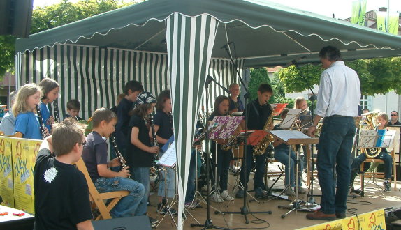 Ab 14 Uhr sorgte die Musikschule Eberbach für die Unterhaltung der Festgäste. Ensembles und Gruppierungen (unsere Bilder) aus verschiedenen Sparten stellten ihr Können unter Beweis und begeisterten die Zuschauer. Selbst ein kleiner Regenschauer zwischendurch konnte die Stimmung nicht trüben. Gegen 17 Uhr versammelten sich nochmals alle Musiker um die Bühne. Die Bürgermeister Jan Frey (Schöbrunn), Ralf Schnörr (Neckargerach) und Bernhard Martin (Eberbach) dirigierten dann zusammen das gemeinsame Geburtstagsständchen "Zum Geburtstag viel Glück…" für Sozialstation und Musikschule, das von allen Festbesuchern auf dem Leopoldsplatz gesungen wurde.