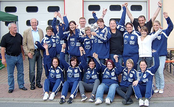 (bro) (pk) Mit großem Engagement, mit Können und Begeisterung erkämpfte sich die junge Damenmannschaft des Sportvereins Zwingenberg die Meisterschaft und den Aufstieg. Bei der fröhlichen Meisterschaftsfeier beim neuen Jugendraum Zwingenberg gratulierten Bürgermeister Peter Kirchesch und der Vorsitzende des SV Zwingenberg Michael Gramlich (li.) den überaus erfolgreichen Fußballerinnen zu ihrem Erfolg. Lob und Anerkennung galt dem einsatzfreudigen und bewährten Trainer Dietmar Weiser, dessen Arbeit die Spielerinnen sehr schätzen, und seinem Assistenten Matthias Hamm ( Bildmitte und re.).