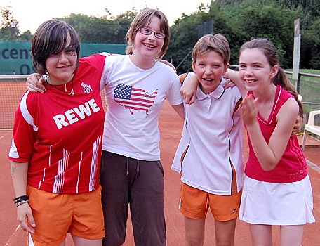 Leistungsstarke Mädels (Foto: privat)(bro) (jth) Die Tennismannschaft U14 des TC Oberzent Beerfelden mit Saskia Kleiber, Inez Thomson, Leonie Bundschuh und Sara Keller gewann ihr viertes Medenspiel in Folge, diesmal auswärts beim TC BW Heppenheim. Damit sind die Juniorinnen Tabellenführer in der Kreisliga A und haben die Chance, in die Bezirksliga aufzusteigen.