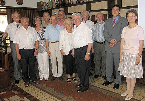 50 Jahre treue Verbundenheit zur Volksbank V. l.: Vorstandsvorsitzender Herbert Hinterschitt, Heinz Eich, Gerlinde Deininger, Helmut Bayer, Franz Schmidt sen., Emil Lenz, Ilse Zimmermann, Karl Hach, Ludwig Gremmelmaier, Robert Mühe, Dirk Götz, Vorstandsmitglied Ulrike Winterbauer. (Foto: privat)(bro) (sh) In Zeiten, in denen ein Kilogramm Brot noch 84 Pfennige kostete und Eintracht Frankfurt Deutscher Fußballmeister wurde, sind zahlreiche Kunden Mitglied der Volksbank Neckartal eG geworden. Diese begrüßte Vorstandsvorsitzender Herbert Hinterschitt in Eberbach zusammen mit Vorstandskollegin Ulrike Winterbauer zur Ehrung für 50 Jahre treue Verbundenheit zu ihrer Bank. In seiner kurzen Ansprache hob Hinterschitt hervor, dass es in der heutigen schnelllebigen Zeit nicht mehr selbstverständlich ist, über einen so langen Zeitraum Mitglied bei einem Verein oder einem Unternehmen zu sein. Durch viele Höhen und Tiefen haben die Jubilare die Bank begleitet und viele wichtige Entscheidungen mitgetragen, die letztendlich zu der positiven Entwicklung beigetragen haben. Die Ehrungen wurden von einer "Zeitreise ins Jahr 1959" und von einer Bilderpräsentation umrahmt. Nach dem obligatorischen Gruppenbild klang die Veranstaltung in gemütlicher Runde und bei interessanten Gesprächen aus.