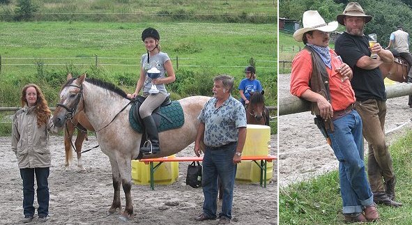 Claudia Wettig gewinnt 2.Neckartal-Cup (Foto Links) v.l. Nicole Wasser, Richterin Breitensport mit Claudia Wettig, Gewinnerin des Neckartal-Cup bei den Jugendlichen und Harald Rupp, Vorsitzender des Reitvereins, (Foto rechts) "zwei Cowboys beim Fachsimpeln" (Fotos: Nicol Kolbe)(ko) Am vergangenen Wochenende fand in Pleutersbach wieder das alljährliche Reiterfest mit Sternritt, Trail und Bogenschießen statt. Ebenso wurde der 2.Neckartal-Cup ausgetragen.